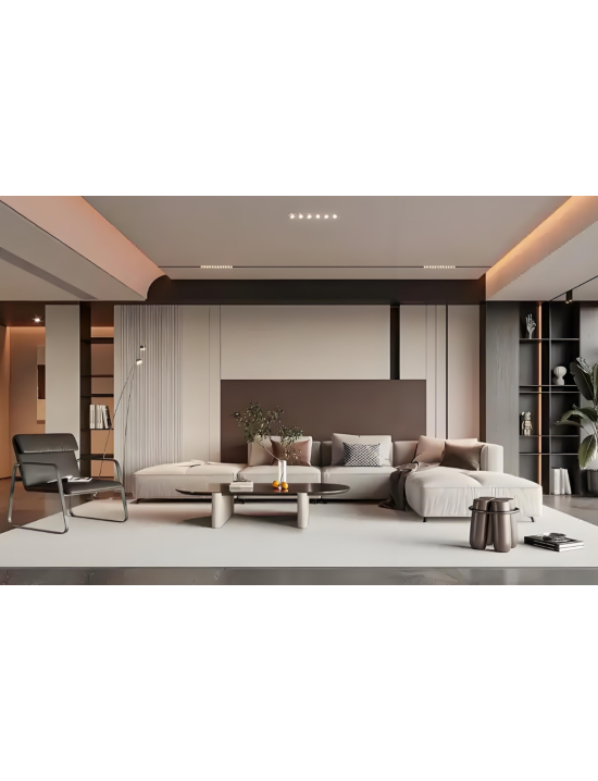 無主燈設(shè)計的文化轉(zhuǎn)型體現(xiàn)在對傳統(tǒng)照明觀念的顛覆。它摒棄了單一主燈的中心化布局,轉(zhuǎn)而采用筒燈、射燈、燈帶、壁燈及落地燈等多種光源的靈活組合,依據(jù)空間的功能布局、使用場景及居住者的獨特品味,進行精準規(guī)劃與智能調(diào)控。這種設(shè)計讓光線如同細膩的筆觸,在空間中自由流淌,創(chuàng)造出既和諧統(tǒng)一又充滿變化的光影效果,為家居環(huán)境增添一抹溫馨而雅致的氛圍。