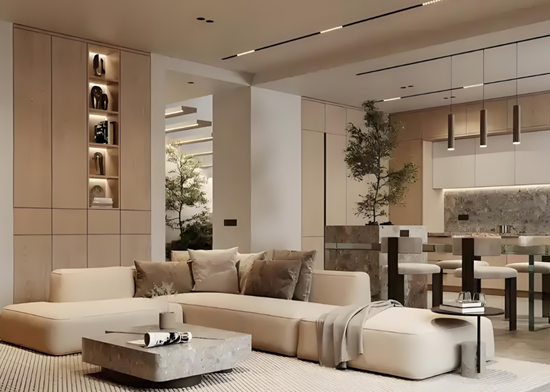 無主燈設(shè)計(jì)強(qiáng)調(diào)多層次照明,通過組合使用不同類型和強(qiáng)度的光源,創(chuàng)造出豐富的光影效果。例如,可以在天花板上安裝筒燈或LED燈帶,墻壁上安裝壁燈,以及在地面上放置落地?zé)?,這樣可以避免單一光源造成的壓迫感。