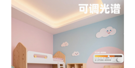 為了實(shí)現(xiàn)2700K-4000K可調(diào)光譜的功能,建議選擇具有智能控制功能的燈具??梢酝ㄟ^(guò)手機(jī)APP或智能開(kāi)關(guān)輕松調(diào)節(jié)燈光的色溫、亮度等參數(shù),滿足孩子不同場(chǎng)景下的需求。