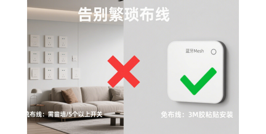 傳統(tǒng)的照明控制系統(tǒng)安裝往往需要專業(yè)的電工進(jìn)行復(fù)雜的布線工作,不僅耗時(shí)費(fèi)力,而且還可能對(duì)墻面和地面造成損壞。而免布線藍(lán)牙Mesh一鍵場(chǎng)景面板則完全避免了這些問題。它采用無線連接方式,只需要將面板固定在合適的位置,就可以與無主燈設(shè)備進(jìn)行配對(duì),實(shí)現(xiàn)快速安裝。這種便捷的安裝方式,讓你無需擔(dān)心施工的麻煩,輕松打造智能照明系統(tǒng)。