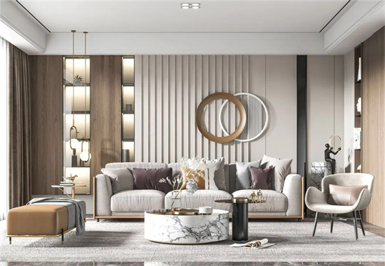 設計:多搭配筒燈、落地燈、小吊燈、燈帶等,形成虛實明暗的視覺對比,滿足休息、交談、閱讀等不同需求。燈具數量控制在3-4種之內。