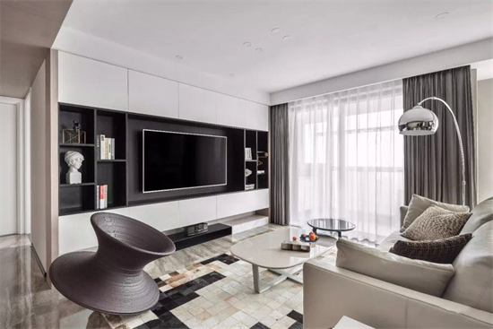 如果客廳進深長,局部采光差,落地燈作為獨立補光,還能增強空間通透感。不少人喜歡晚上躺在沙發(fā)上看書,所以準備一個落地燈還是很有必要的。