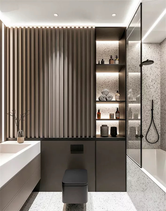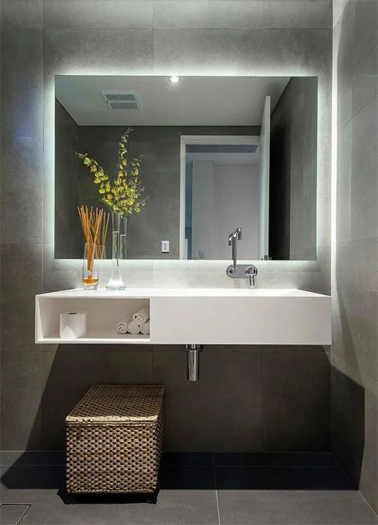 鏡后一圈燈帶可以選擇白光或暖黃光,營造溫暖又不失高級的氛圍。