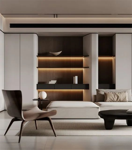 客廳無(wú)主燈采用多個(gè)燈源的設(shè)計(jì),使得照明效果更加柔和,避免了單一燈源可能會(huì)造成的刺眼、不舒適的感覺(jué),從而增強(qiáng)了空間的舒適性。
