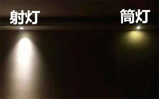 區(qū)分射燈和筒燈,主要看光束角大小,以及是否能轉向。筒燈的光束角更大,射燈更小,光線更集中。