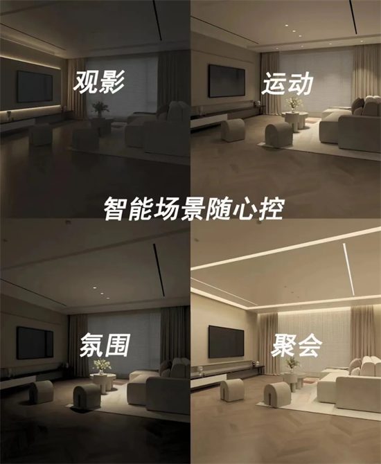 例如,無主燈照明可以根據(jù)不同場合配置不同燈光,比如家人聚會(huì),夫妻在餐廳用餐或是一人在客廳里閱讀,可開啟不同燈光,營造特別空間氛圍,從而給予居者不同的內(nèi)心感知