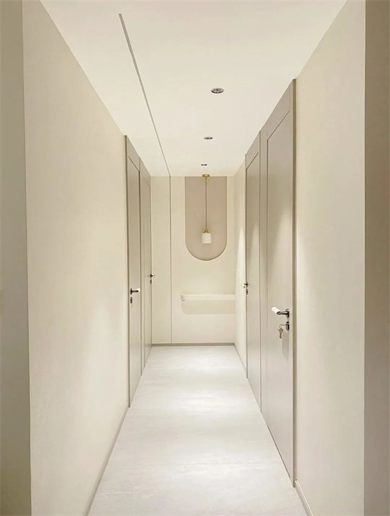玄關(guān)主要起到視覺過度作用,不宜過明或過暗。暖白或暖黃色燈光較為合適,過道燈+壁燈可以滿足基礎(chǔ)照明。