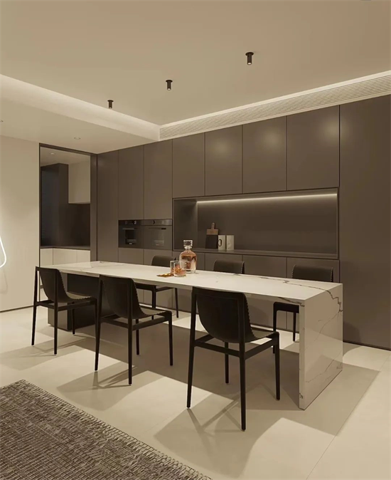 餐桌上方可選用小吊燈,或加裝均勻分布的射燈或筒燈,增加漫反射照明,創(chuàng)造柔和光線下的用餐氛圍。