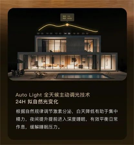 三維調(diào)光依托Auto Light全天候主動(dòng)調(diào)光,可自動(dòng)模擬24小時(shí)陽光色溫和亮度的變化,實(shí)時(shí)感知用戶的存在與動(dòng)作,無需人工操作,實(shí)現(xiàn)無感調(diào)光。獨(dú)創(chuàng)的 Mix-light 精細(xì)調(diào)光,能夠保證出光恒定精準(zhǔn)、無頻閃,無極調(diào)光在體驗(yàn)上更加絲滑。