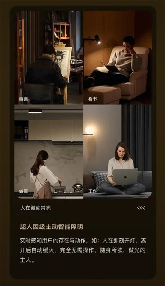 在智能系統(tǒng)打造上功力深厚的歐瑞博,在無主燈上也實(shí)現(xiàn)了智能控制與系統(tǒng)管理。通過 HomeAI 智能操作系統(tǒng)和 MixPad 智能中控屏精準(zhǔn)調(diào)光,根據(jù)用戶設(shè)置一鍵切換場景,并引入了更多智能化場景光效,如:空間美化光、情緒調(diào)節(jié)光、生活場景光、自然風(fēng)景光等,拓展了更精細(xì)的用戶場景需求,完全顛覆了普通智能燈具的使用體驗(yàn)。