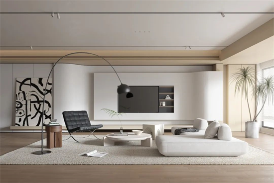 提前計算好電視墻的深度與電視機(jī)的厚度,將電視機(jī)嵌入電視柜或者大理石電視墻中,達(dá)到齊平或微內(nèi)嵌效果,既提高了空間的整體性,也減少了電視機(jī)的突兀感,視覺上更為美觀大方。