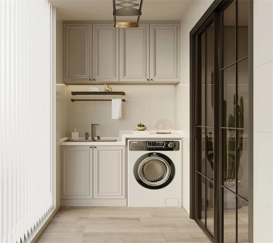 洗衣機(jī)、烘干機(jī)也算是比較大的家電了,但它們的放置并沒有固定區(qū)域,家政區(qū)、生活陽臺、衛(wèi)生間、廚房……都有可能,但不管在哪里,都會采用內(nèi)嵌式設(shè)計,不僅節(jié)約了空間,也提高了居室的協(xié)調(diào)性和匹配度。