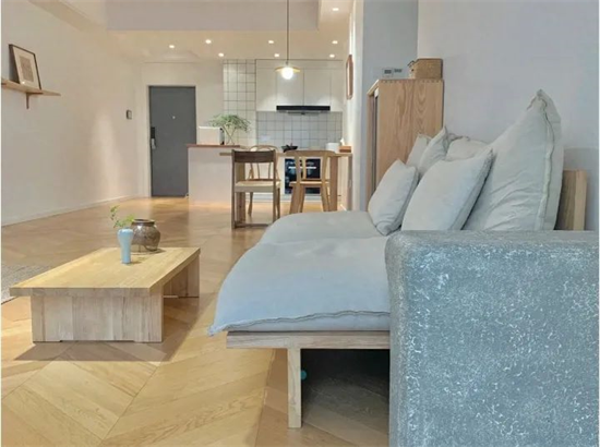 整套房子通鋪多層魚骨拼,屋主說:當時在選擇地板時很糾結(jié),不知道是用經(jīng)典大板還是魚骨,最后考慮到自家墻面是“大白墻”,才決定用魚骨。
