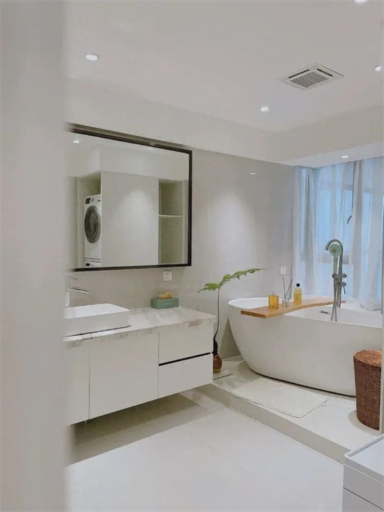 3,浴室柜靠墻可以不做擋水條,打美縫膠,極簡,耐看。