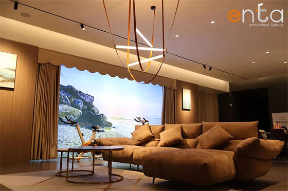 電視墻照明,可在電視墻上門安裝洗墻射燈,或者在電視墻上下開槽,安裝線性燈,減少屏幕與環(huán)境明暗對比,保護(hù)視力健康!