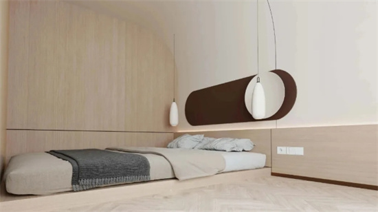 房頂圓弧形頂部巧妙打破了傳統(tǒng)方正的格局,為空間增添一種藝術(shù)美感。木質(zhì)地板墻壁合理銜接,搭配實(shí)用且高級(jí)的榻榻米營造出舒適的休憩空間。