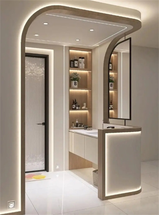 無(wú)主燈設(shè)計(jì)使得衛(wèi)生間照明更加周到,滿足了不同時(shí)間段和不同用途的光照需求。