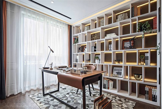 軌道燈則是無主燈照明的另一大利器。它們由一組燈具沿著軌道移動,可以靈活調(diào)整照射方向和位置,非常適合用于強調(diào)藝術品或特定區(qū)域的照明。軌道燈多用于畫廊、書房或展示空間,為空間增添了一抹靈動的光影。