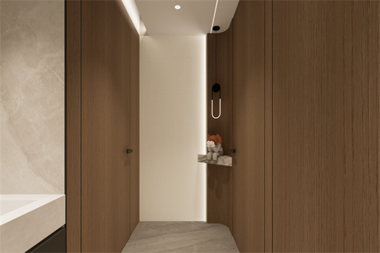 玄關(guān)作為室外與室內(nèi)的過渡區(qū),獨立玄關(guān)一般可以用一兩盞射燈、感應(yīng)燈帶配合配合照明。如果以門為中心布燈,一進門會讓人感覺頭頂光線太強。