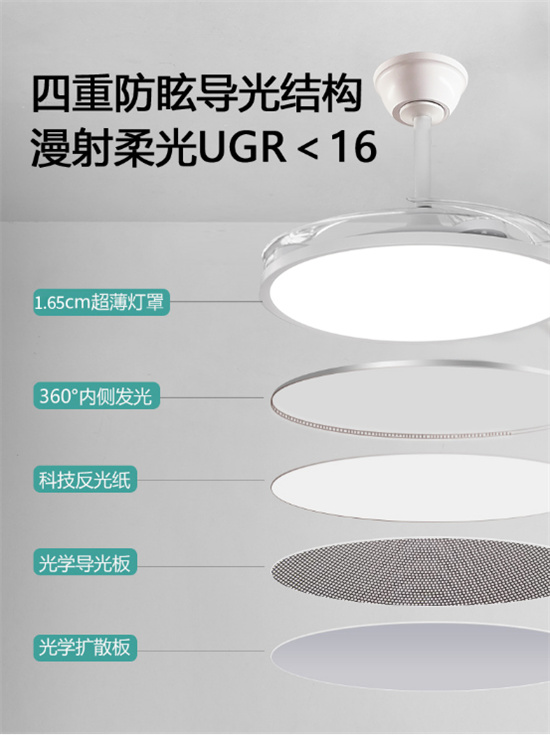澳克士照明的這款智能隱形風扇燈,在運行時噪音控制達到了驚人的30分貝以下,實現了真正的“淺音運行”,即使在夜晚也能保證用戶的安靜睡眠,風輕不擾眠,為用戶創(chuàng)造一個寧靜舒適的生活環(huán)境。