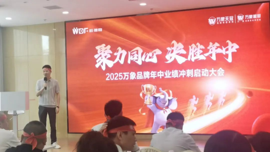 聚力同心,決勝年中。旺德府集團(tuán)旗下核心品牌萬象板材、萬象天冠高端衣柜定制,于6月13日上午在萬象時代15樓展開旺德府集團(tuán)2025半年度業(yè)績攻堅暨618年中鉅惠啟動大會。集團(tuán)高層、部門負(fù)責(zé)人及全體銷售人員共同參與了本次會議,聚焦戰(zhàn)略規(guī)劃、國補(bǔ)政策、營銷方案,全力沖刺銷售佳績,力爭在激烈的家居建材市場競爭中突圍而上。