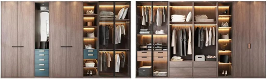 衣柜的開門方式,直接會影響業(yè)主的使用體驗,因而這個細(xì)節(jié)也要考慮好。常見的多為平開門、推拉門。