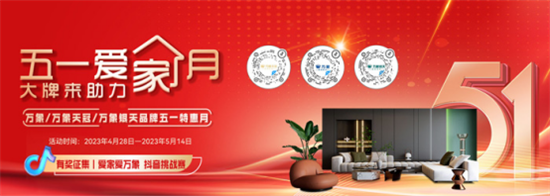 據(jù)悉,為回饋廣大消費(fèi)者,4月28日-5月14日,旺德府家居集團(tuán)“五一愛家月 大牌來助力”特惠月活動將在全省門店統(tǒng)一開展!好禮、優(yōu)惠、明星產(chǎn)品、定制套餐不容錯(cuò)過!更有“愛家愛萬象”主題抖音挑戰(zhàn)賽貫穿全程,曬出愛家,曬出幸福,超值健康大禮等著你。