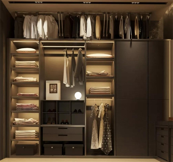 在衣柜照明中,選擇合適的顏色溫度和色系可以極大地影響服裝的呈現(xiàn)效果。一般而言,接近自然光的白光色溫(4000K-5000K)能夠最真實地還原衣物的顏色,使人們在挑選服裝時更加準確無誤。特別是在化妝或挑選具有精細圖案的服裝時,高顯色指數(shù)的白光燈具能讓顏色更加鮮明生動,避免色差導(dǎo)致的搭配錯誤。