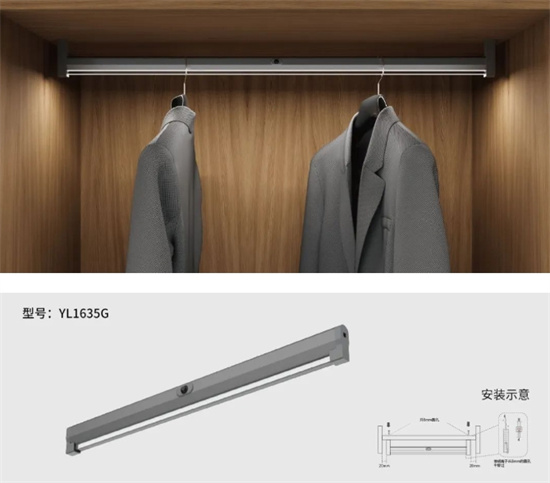 采用SMD2835高效LED光源,顯色性好,色溫穩(wěn)定。帶人體紅外感應(yīng),當(dāng)開啟衣柜感應(yīng)到人運(yùn)動(dòng)時(shí)自動(dòng)點(diǎn)亮,延時(shí)關(guān)閉,選用優(yōu)質(zhì)鋁合金材料,陽極氧化處理,不變色。外觀精美厚重,承重60公斤不變形。適合定制家具的安裝及后裝。