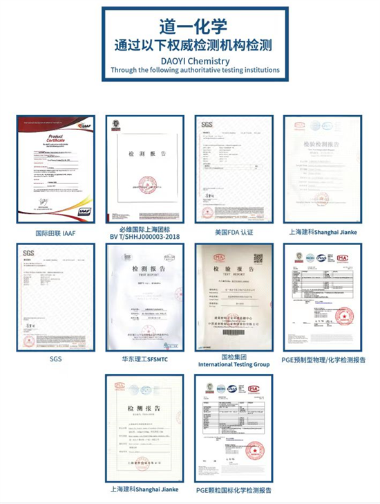 道一化學研發(fā)生產(chǎn)的PGE石墨烯塑膠跑道材料以社會責任和環(huán)境保護相整合,產(chǎn)品是通過動態(tài)交聯(lián)而成的一種新型熱塑性彈性體,符合FDA可與食品接觸認證的彈性體,更是“國際田聯(lián)”認定體育場地面層的新型頂級材料。