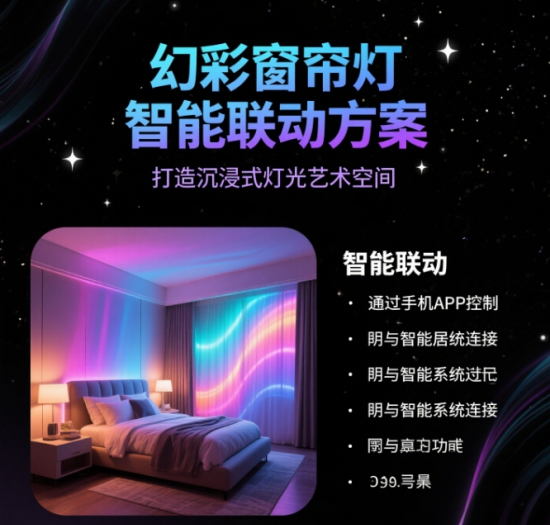 在當(dāng)今科技飛速發(fā)展的時(shí)代,家居環(huán)境的智能化與藝術(shù)化正成為人們追求的新潮流。而幻彩窗簾燈智能聯(lián)動(dòng)方案,無疑為我們打開了一扇通往沉浸式燈光藝術(shù)空間的全新大門。